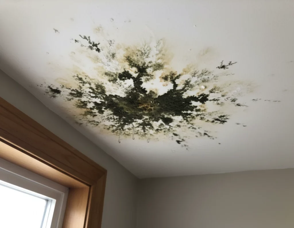 - Taches brunes ou jaunâtres au plafond, surtout après une période de pluie